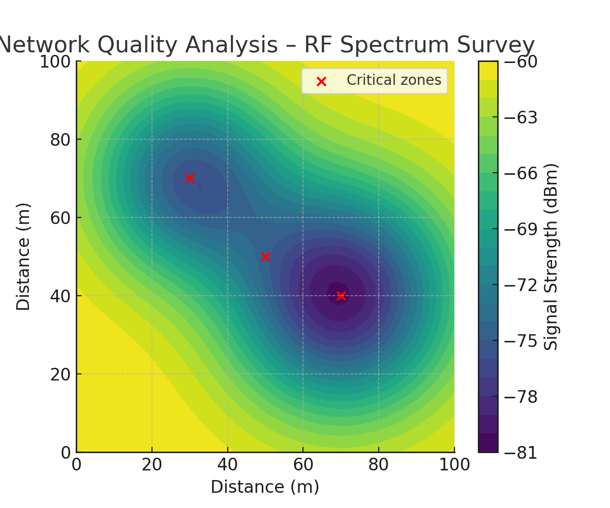 A Dronium nemcsak vizuális megoldásokat kínál. Új szolgáltatásunk a drónnal végzett mobilhálózat- és rádiófrekvenciás spektrumfelmérés. Tér-, frekvencia- és időbeli feltérképezést támogató ipari drón megoldásunk segítségével gyorsan, pontosan juttatunk telekommunikációs, ipari és önkormányzati projekteket nagy felbontású adathoz (hálózati lefedettség, interferencia-források, stb.).